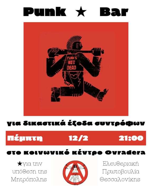 Punk Bar για δικαστικά έξοδα συντρόφων Πέμπτη 12/2 από τις 21:00 στο κοινωνικό κέντρο Ovradera.