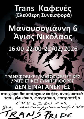 Διοργανώνουμε trans καφενέ για την οικονομική ενίσχυση της συνέλευσης και του χώρου που μας φιλοξενεί.