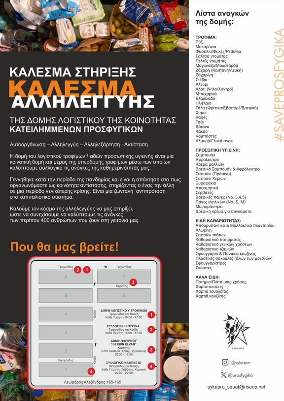 Solidarity call of the Logistics Structure of the Community of Squatted Prosfygika
