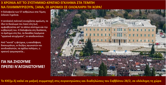 ΔΕΝ ΞΕΧΝΑΜΕ ΔΕΝ ΣΥΓΧΩΡΟΥΜΕ ΤΟ ΚΡΑΤΙΚΟ-ΚΑΠΙΤΑΛΙΣΤΙΚΟ ΕΓΚΛΗΜΑ ΣΤΑ ΤΕΜΠΗ