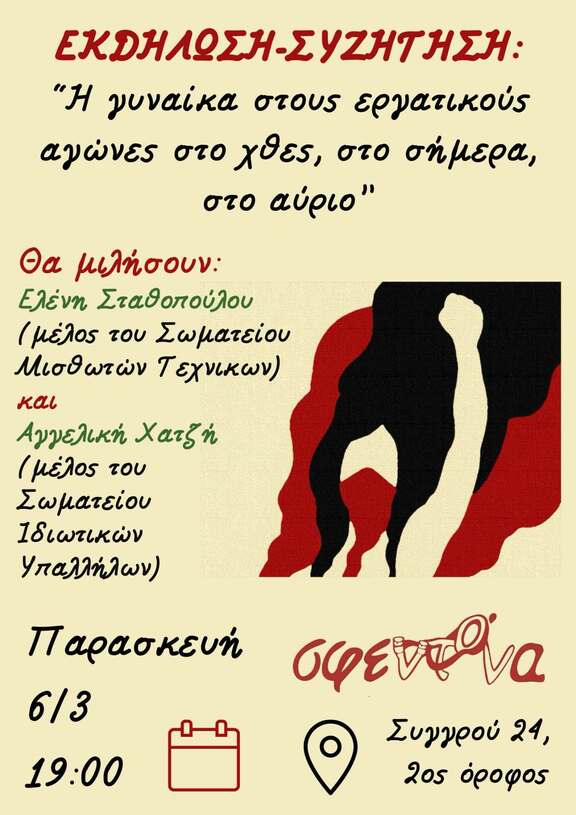 Εκδήλωση: Η γυναίκα στους εργατικούς αγώνες στο χτες-στο σήμερα-στο αύριο