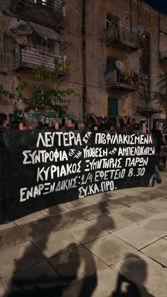 Δύναμη και αλληλεγγύη στα προφυλακισμένα συντρόφια της υπόθεσης των Αμπελοκήπων.