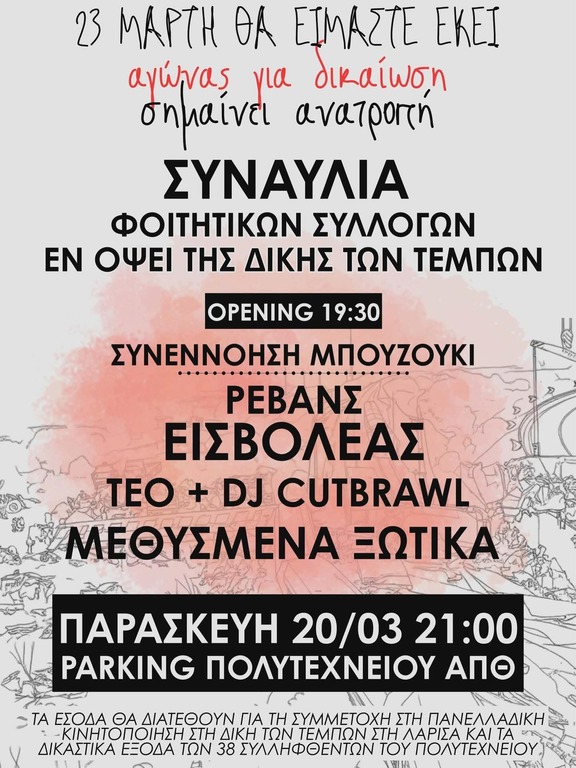 Για αυτό διοργανώνουμε μεγάλη συναυλία στο ΑΠΘ για το έγκλημα στα Τέμπη, για την οικονομική ενίσχυση της κινητοποίησης των Συλλόγων στην Λάρισα.