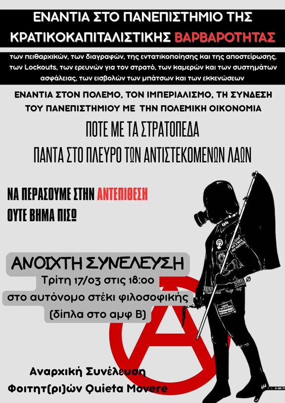 Ανοιχτή συνέλευση της Αναρχικής Συνέλευσης Φοιτητών/τριών Quieta Movere