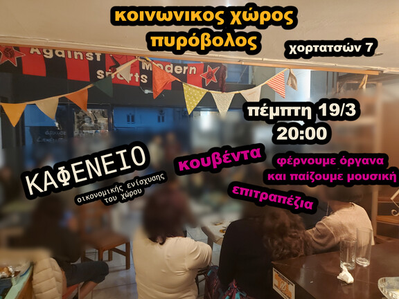 Καφενείο οικονομικής ενίσχυσης, κοινωνικός χώρος πυρόβολος, χορτατσών 7, άγιος νικόλαος κρήτης.
