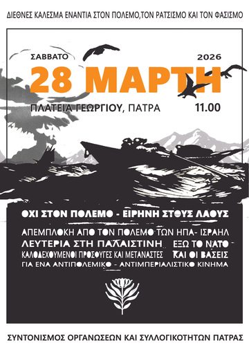 Κάλεσμα στη διαδήλωση ενάντια σε πόλεμο, φασισμό και ρατσισμό| 28/3, 11:00, πλ. Γεωργίου