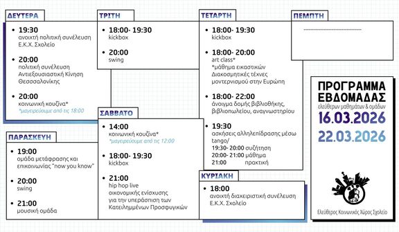 Εβδομαδιαίο πρόγραμμα του Ε.Κ.Χ. Σχολείο