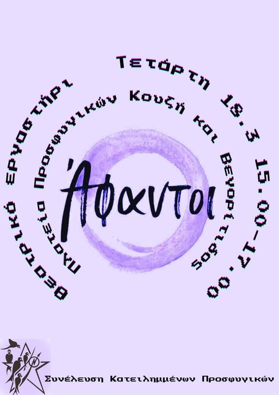 Θεατρικό εργαστήρι με την ομάδα "Άφαντοι" την Τετάρτη 18/03 στις 15.00 στην πλατεία της Κοινότητας Κατειλημμένων Προσφυγικών (Κουζή και Βεγορίτιδος). Σας περιμένουμε!
