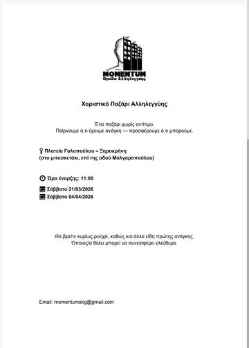 Χαριστικό Παζάρι Αλληλεγγύης - Momentum Ομάδα Αλληλεγγύης