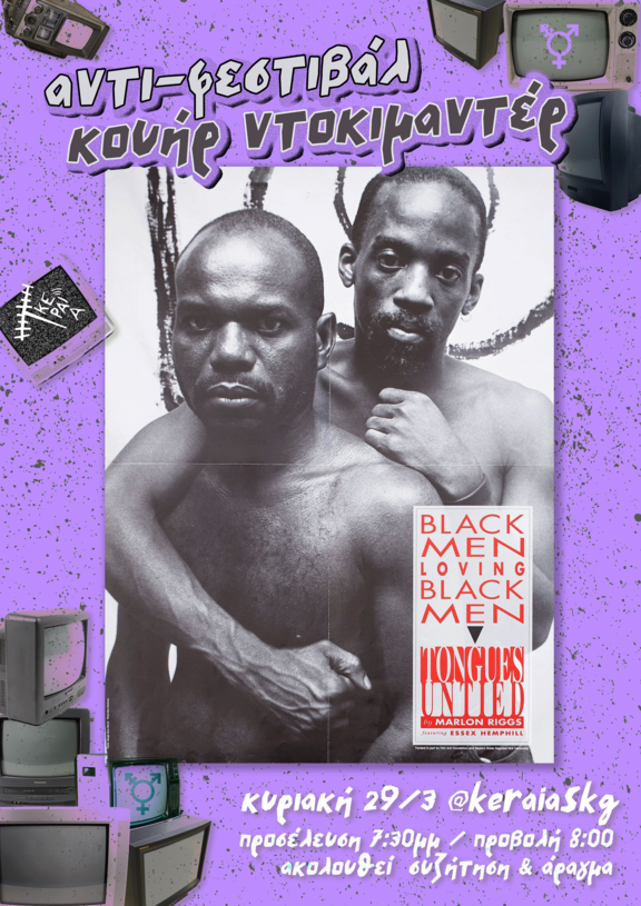 Το αντιφεστιβάλ κουήρ ντοκιμαντέρ προσθέτει μία ακόμη προβόλη αυτή την Κυριακή! Μαζευόμαστε από τις 19:30 (η ταινία αρχίζει στις 20:00) και βλέπουμε το Tongues Untied (1989)