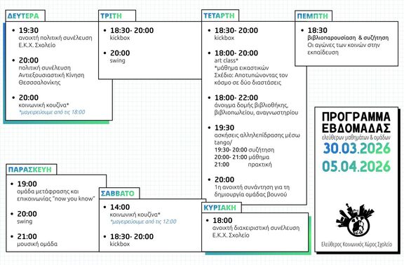 Εβδομαδιαίο πρόγραμμα από 30/3 έως και 5/4