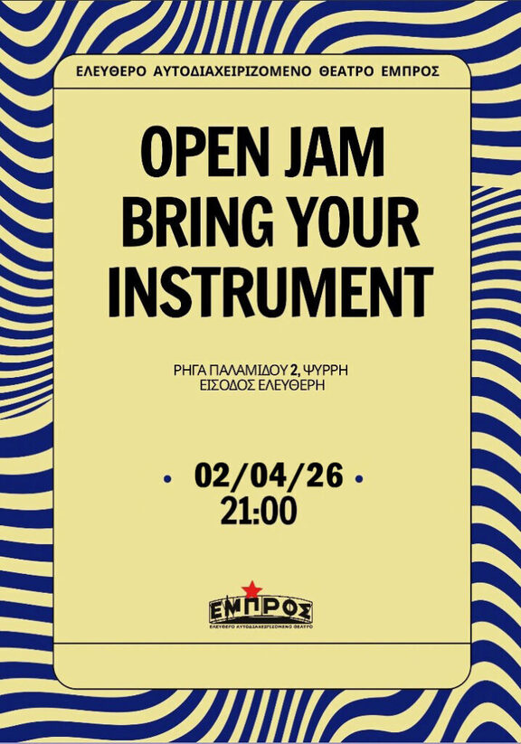 Φέρτε μαζί σας τα όργανα σας (στο φουαγιέ θα έχουμε πιάνο και κρουστά) και ετοιμαστείτε να ταξιδέψουμε παρέα με μελωδίες και ρυθμούς αυτοσχέδιους και αυθόρμητους.
