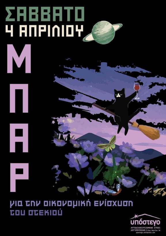 Σάββατο 4.4.2026 από τις 21:00 | Μπαρ για την οικονομική ενίσχυση του στεκιού