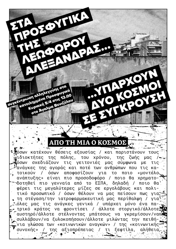 Πανελλαδική και Διεθνή ημέρα ημέρα δράσεων αλληλεγγύης της Κοινότητας των Κατειλημμένων Προσφυγικών