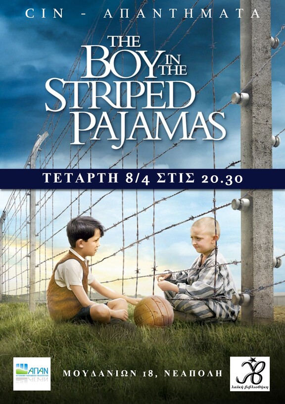 Την Τετάρτη 8/4 στις 20.30 η προβολή της ταινίας "The Boy in the Striped Pyjamas" σε σκηνοθεσία Μαρκ Χέρμαν.