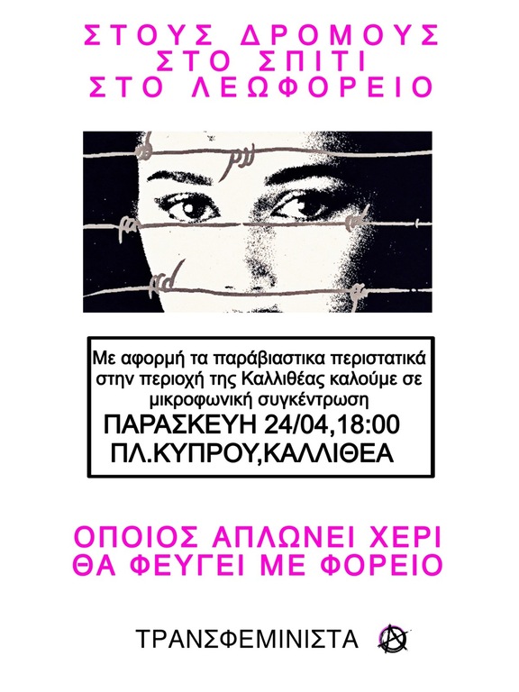 Με αφορμή παραβιαστικά περιστατικά στην περιοχή της Καλλιθέας καλούμε σε μικροφωνική συγκέντρωση.
