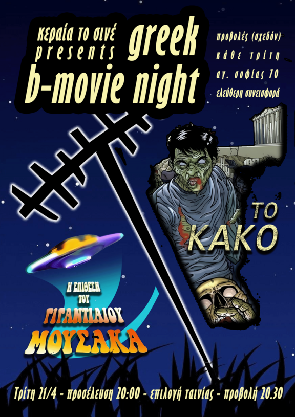 η επίθεση του γιγαντιαίου μουσακά (1999) - στην αλλαγή της χιλιετίας, ένα τεραστίων διαστάσεων παραδοσιακό πιάτο σπέρνει καταστροφή και θάνατο στους δρόμους της Αθήνας. Υπάρχει ελπίδα απέναντι του;