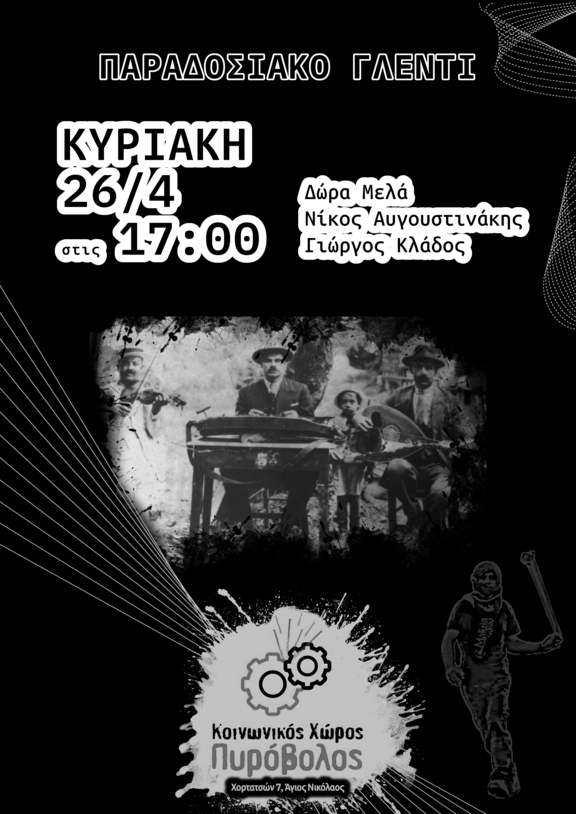 Κυριακή 26/4 στις 17:00. Στον κοινωνικό χώρο Πυρόβολο. Χορτατσών 7, Άγιος Νικόλαος.