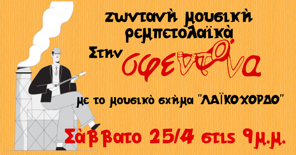 Σας περιμένουμε στη Σφεντόνα για μια βραδιά γεμάτη ρεμπέτικα και λαϊκά ακούσματα μαζί με το σχήμα Λαϊκόχορδο.