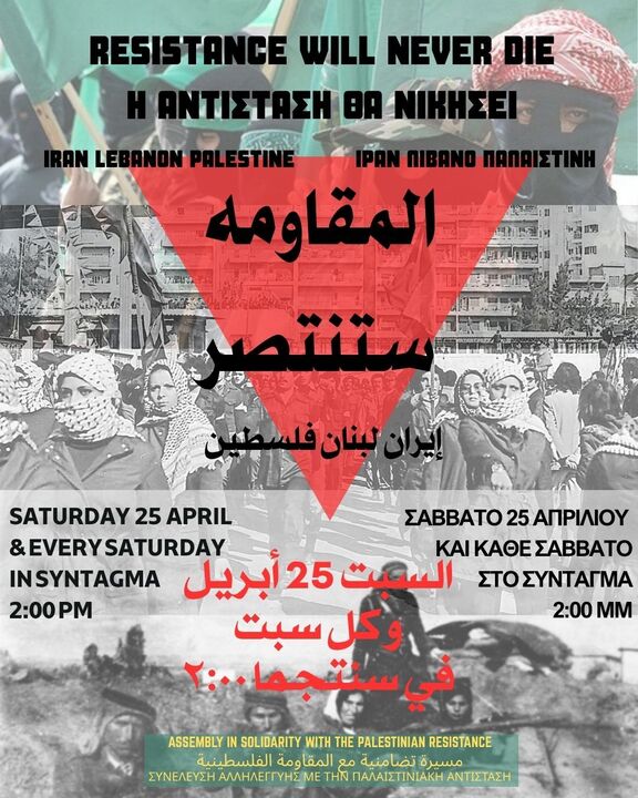 These developments do not find us as merely observers, but as part of the global war. They call on us to choose the right side of history and to unite our efforts for the building of an anti-militarist and anti-war movement, capable of targeting and resisting Western imperialism and colonialism. From Palestinian/Lebanese prisoners in the Occupation prisons, to prisoners of Fortress Europe and political and revolutionary prisoners in Greece. From the people of Palestine, Lebanon, Yemen and Iran, to Cuba, Sudan, Congo and migrants in the Global North and those resisting the Empire from the belly of the beast. Let us connect the struggles and strengthen an internationalist solidarity and resistance against Colonialism, Imperialism and Zionism.