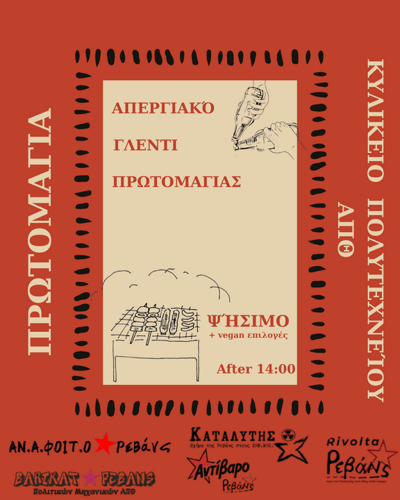 Μετά την πορεία της Πρωτομαγιάς, συνεχίζουμε συλλογικά με απεργιακό γλέντι στο κυλικείο του Πολυτεχνείου!