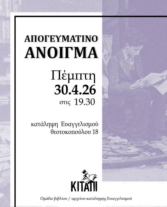 Πέμπτη 30/4/26 στην Κατάληψη Ευαγγελισμού στις 19.30!