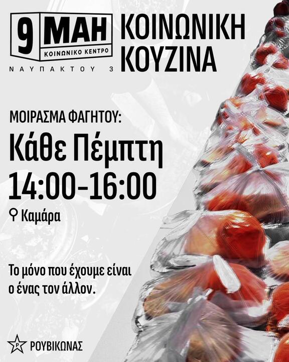 Φόρμα συμμετοχής στην Κοινωνική Κουζίνα 9 Μάη: https://forms.gle/puzmmkCks1TqQaeV7