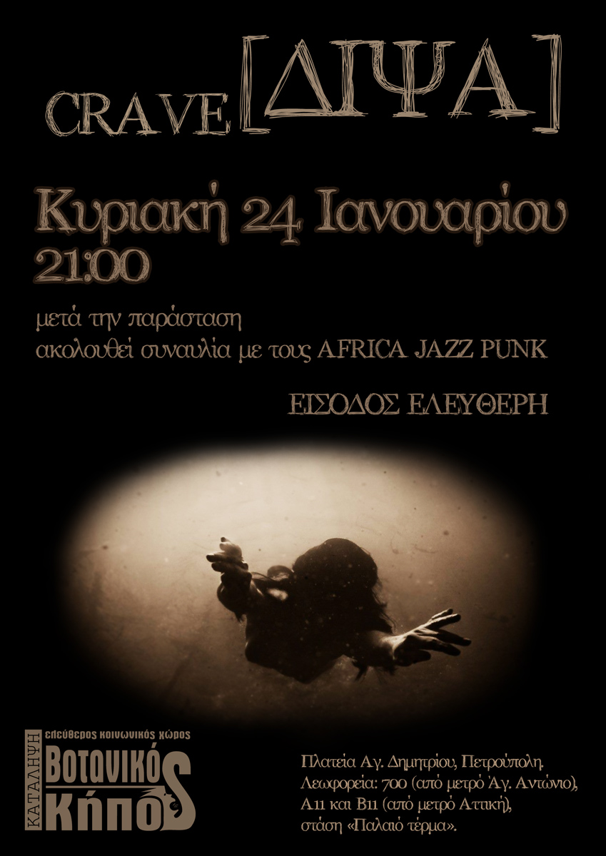 Οι ακρίδες της βιβλιοθήκης σας παρουσιάζουν τη δική τους εκδοχή του ομότιτλου βιβλίου της Sarah Kane στην κατάληψη Βοτανικός Κήπος Πετρούπολης.