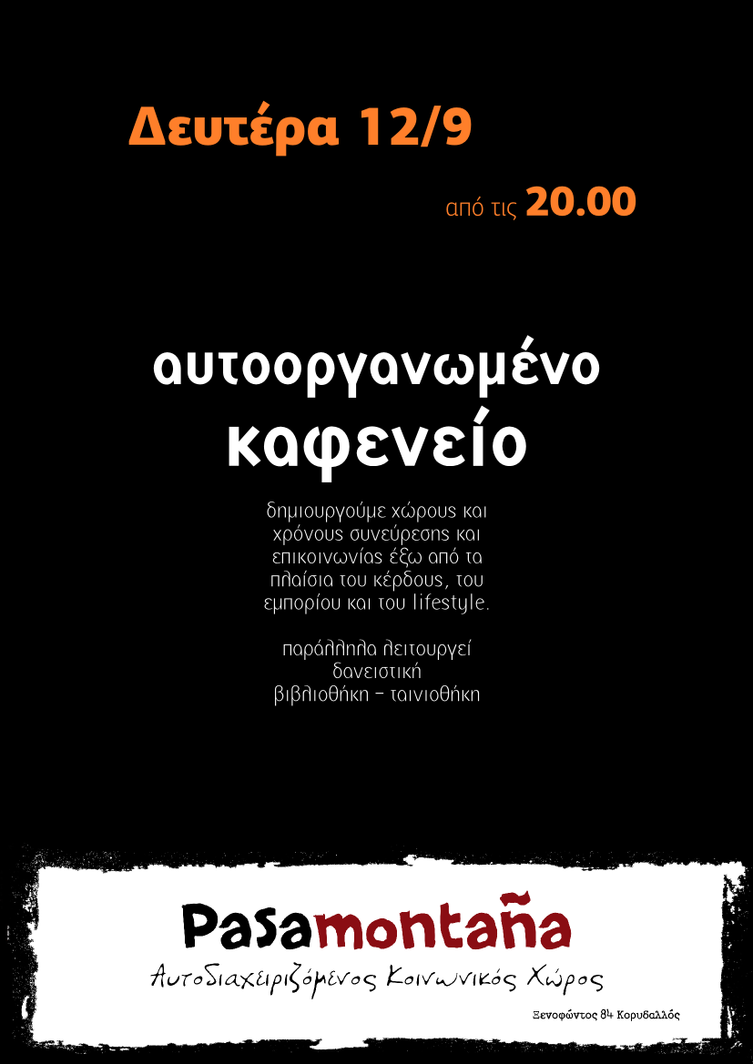 Pasamontaña Αυτοδιαχειριζόμενος Κοινωνικός Χώρος Ξενοφώντος 84 (2' περπάτημα από σταθμό Μετρό Κορυδαλλός)