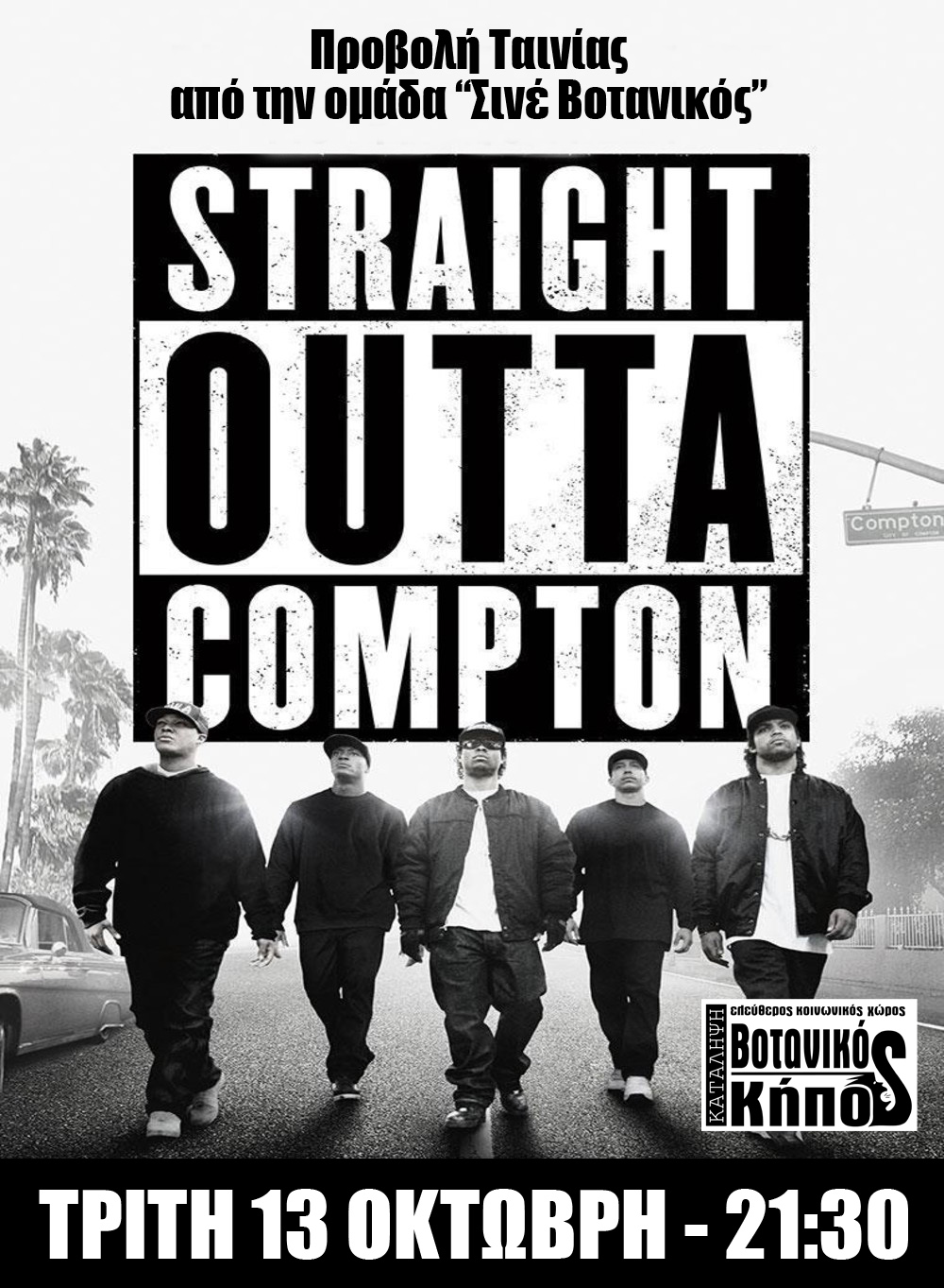 Compton, California, 1986. Πέντε νεαροί μαύροι, χρησιμοποιώντας αφιλτράριστους στίχους και σκληροπυρηνικούς ρυθμούς, θα δώσουν την απογοήτευση και το θυμό τους για τη ζωή στο πιο επικίνδυνο μέρος της Αμερικής και με το πιο ισχυρό όπλο που έχουν: τη μουσική τους. Πηγαίνοντας μας πίσω εκεί που ξεκίνησαν όλα, το Straight Outta Compton αφηγείται την αληθινή ιστορία για το πώς αυτοί οι πολιτιστικοί αντάρτες οπλισμένοι μόνο με τους στίχους, τον ενθουσιασμό, το θράσος τους και ατελείωτο ακατέργαστο ταλέντο, στάθηκαν απέναντι στις αρχές και σχημάτισαν την πιο επικίνδυνη ομάδα στον κόσμο, τους N.W.A.. Και καθώς έλεγαν την αλήθεια που κανείς δεν τόλμησε μέχρι εκείνη τη στιγμή και "ξεμπρόστιασαν" τη ζωή κάτω από την "κουκούλα" στην περιοχή, η φωνή τους πυροδότησε μια κοινωνική επανάσταση που αντηχεί μέχρι και σήμερα.