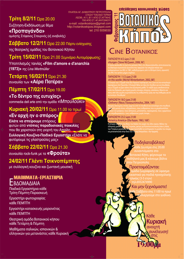 - 12/02 22.00 :: Πάρτυ ενίσχυσης της θεατρικής ομάδας του Βοτανικού Κήπου