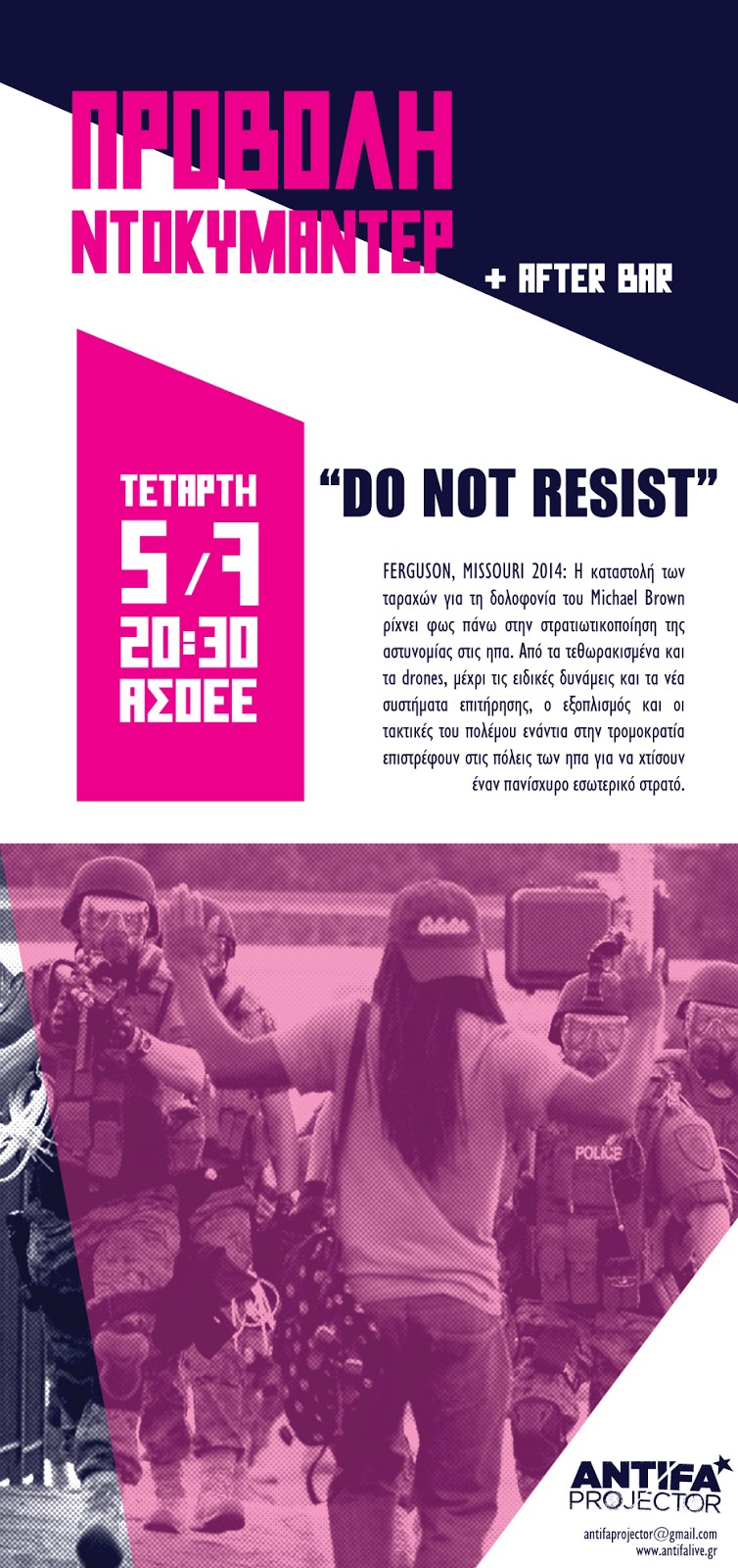 "Do Not Resist": Προβολή ντοκυμαντέρ (+after bar)