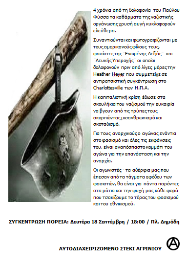 Τέσσερα χρόνια από τη δολοφονία του αντιφασίστα Παύλου Φύσσα από τα τάγματα εφόδου της Χρυσής Αυγής.