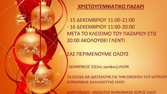 Χριστουγεννιάτικο παζάρι & γλέντι ενίσχυσης του Ιατρείου Κοινωνικής Αλληλεγγύης Ιλίου