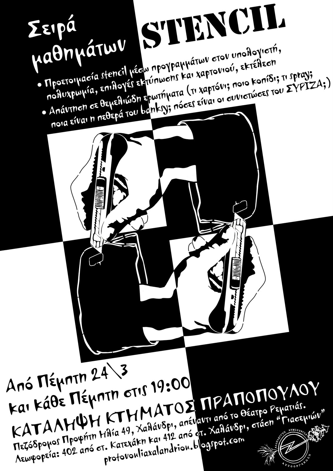 τι; : εργαστήρι θεματική : δημιουργία από : Κατάληψη Κτήματος Πραποπούλου